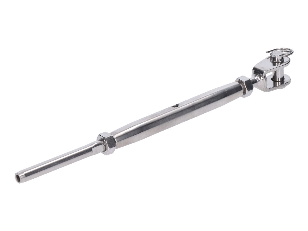 lepiaci úchyt, šponovák pre nerezové lanko ø5mm, so závitom M8 a LH8, brúsená nerez K320/ AISI304