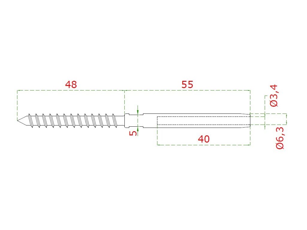 Úchyt (lepiaci) pre nerezové lanko ø 3mm so závitom do dreva, ( ø 6mm / L: 100mm), brúsená nerez K320 /AISI316, použiť lepidlo MD-GEL454/20