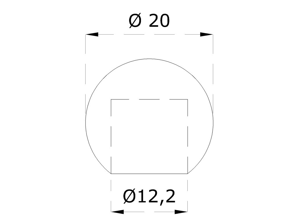 guľa koncová ø 20mm na trubku ø 12mm, otvor ø 12.2mm, brúsená nerez K320 /AISI304