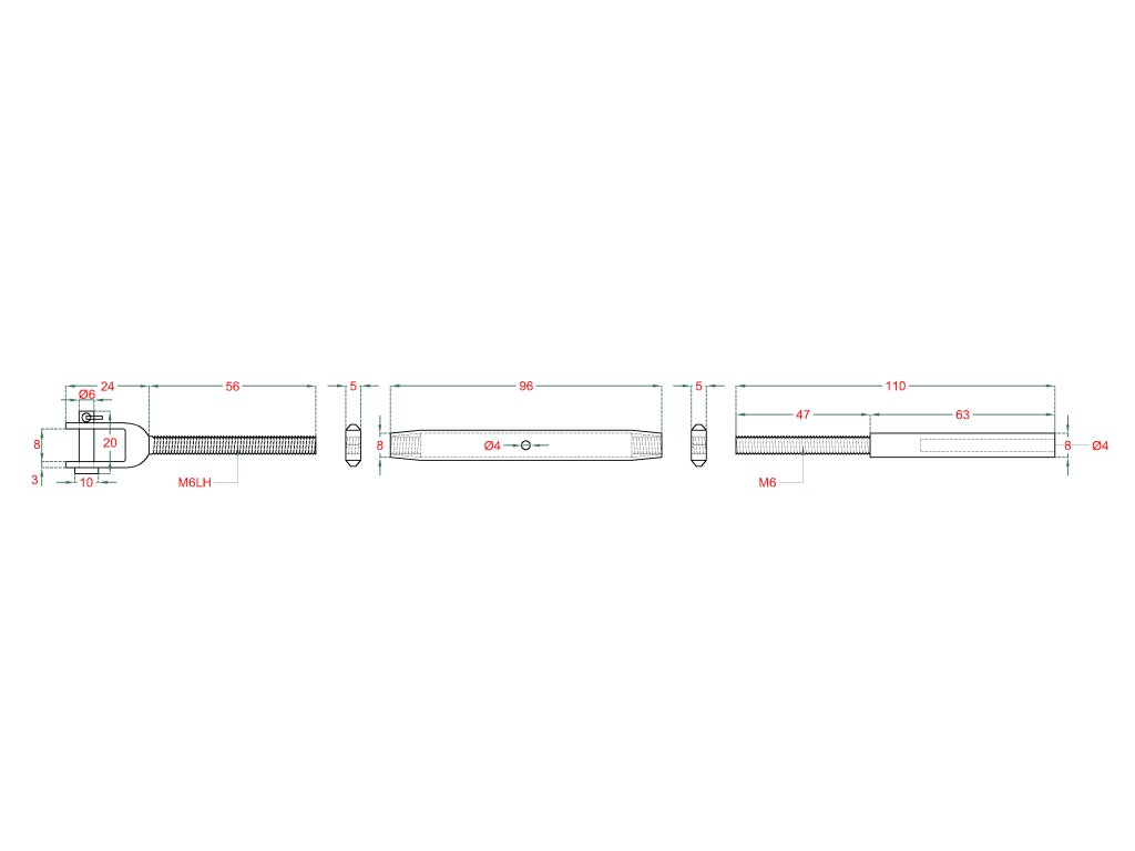lepiaci úchyt, šponovák pre nerezové lanko ø3.0; 4.0; 5.0 mm, so závitom M6-M8 a LH6-LH8, brúsená nerez K320/ AISI304