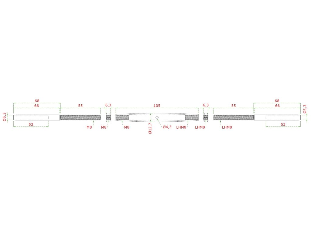 lepiaci úchyt, šponovák pre nerezové lanko ø5mm, so závitom M8 a LH8, brúsená nerez K320/ AISI304