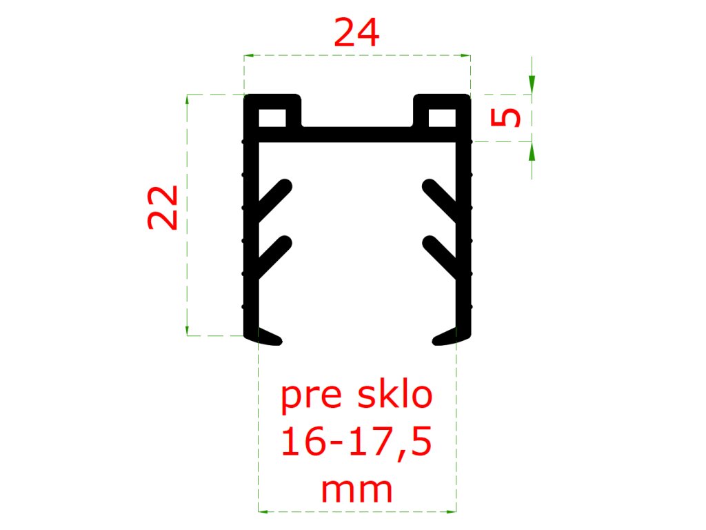 Gumené tesnenie pre madlo 24 x 24 mm, sklo 16 - 17,5 mm
