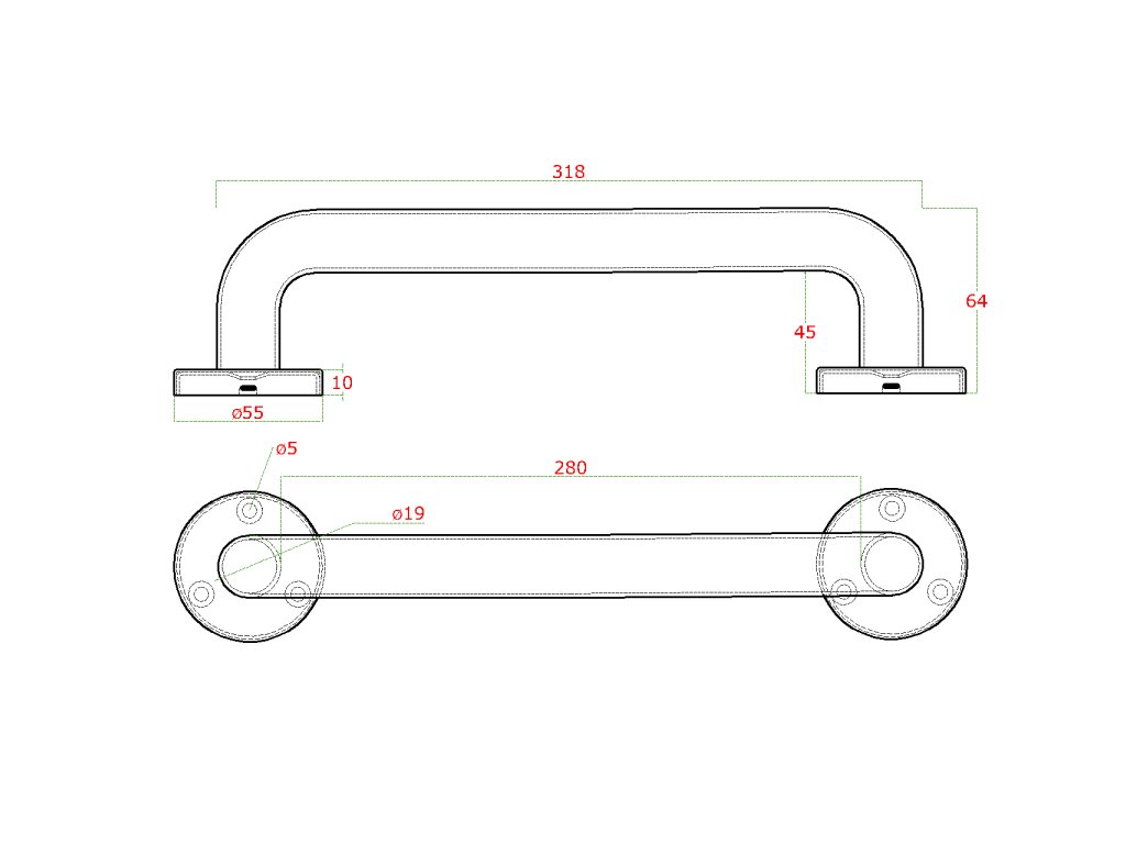 Nerezové madlo (268-416x64mm /ø 19mm), broušená nerez K320 /AISI304