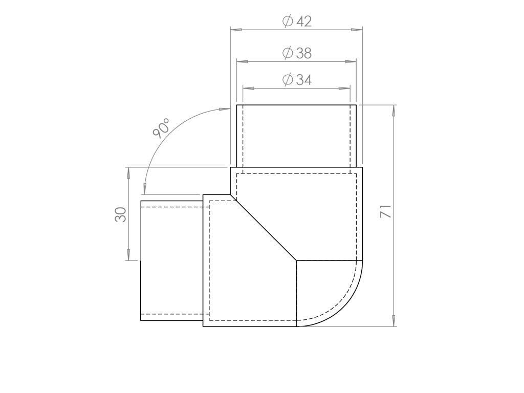 spojka rohová 90° na trubku ø 42.4mm, leštená nerez /AISI304