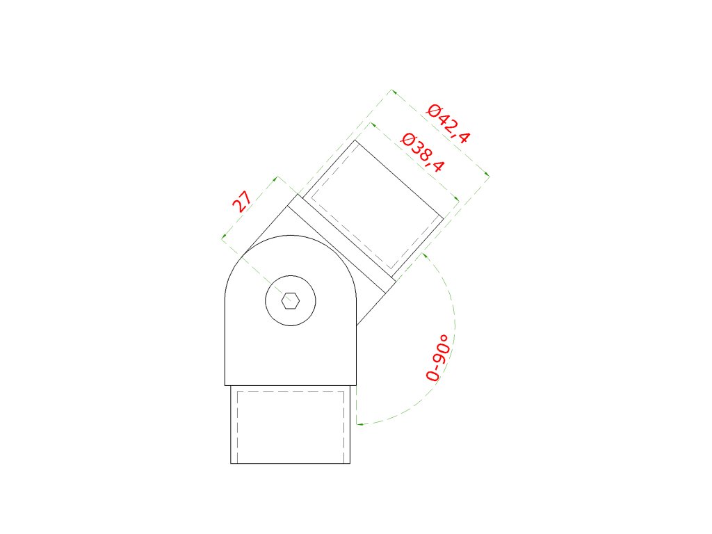 spojka nastaviteľná s kĺbom na trubku ø 42.4 mm, brúsená nerez K320 /AISI304
