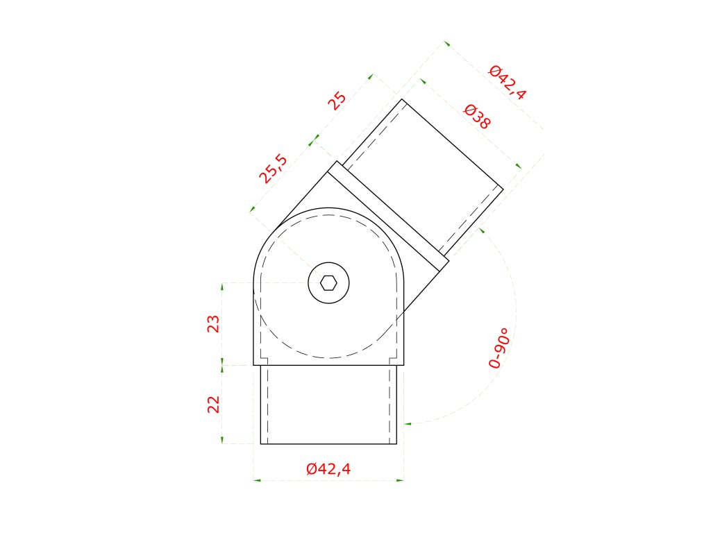 spojka - nastaviteľná s kĺbom na trubku ø 42.4mm, brúsená nerez K320 /AISI316