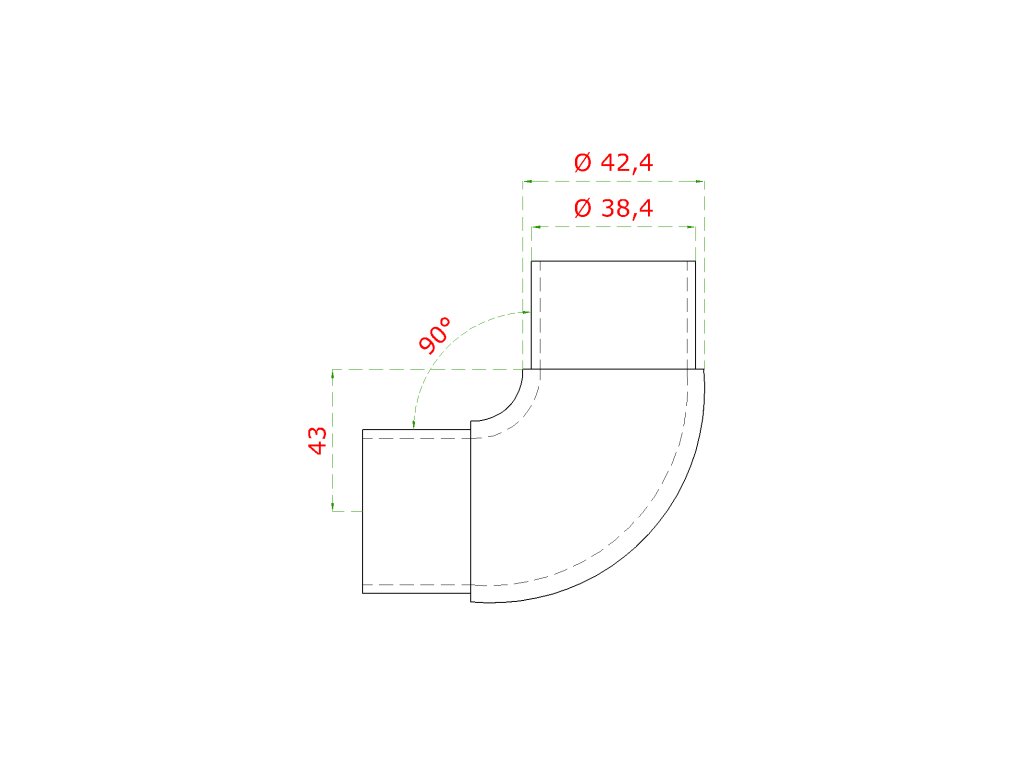 Spojka 90° na trubku ø 42,4 mm, brúsená nerez AISI 304