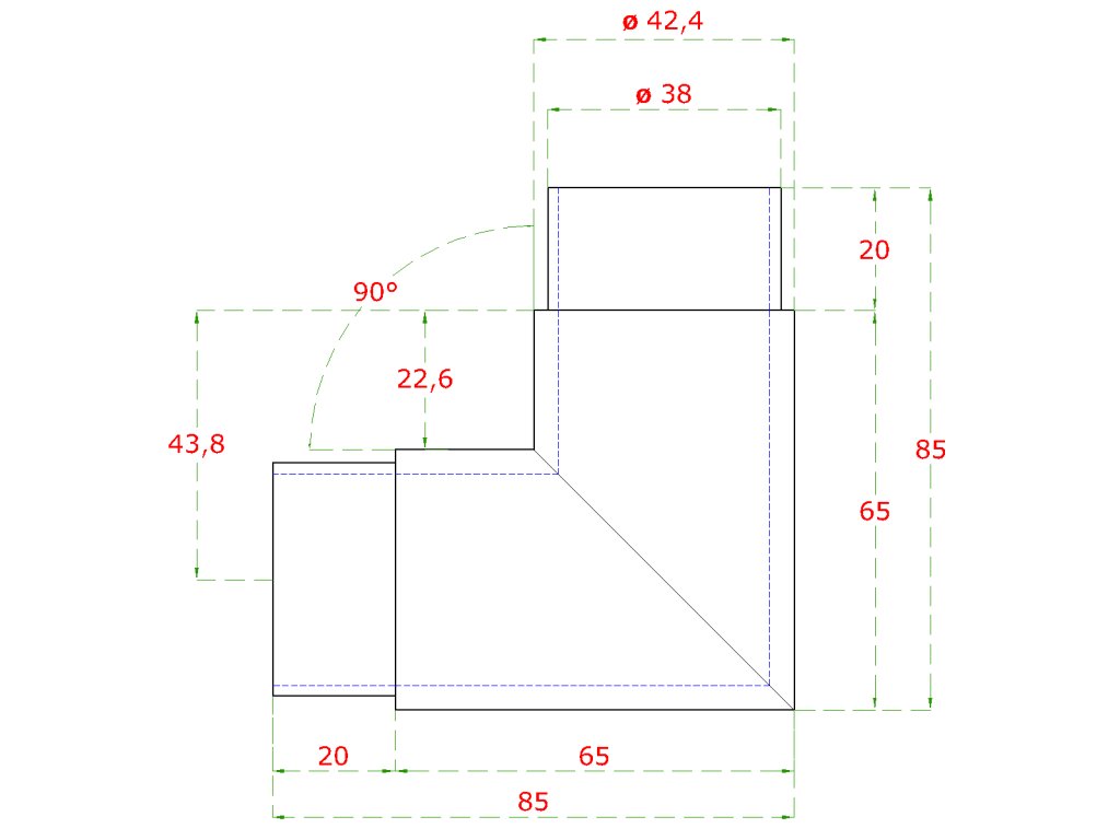 Spojka rohová na trubku ø 42,4 mm, brúsená nerez AISI 304