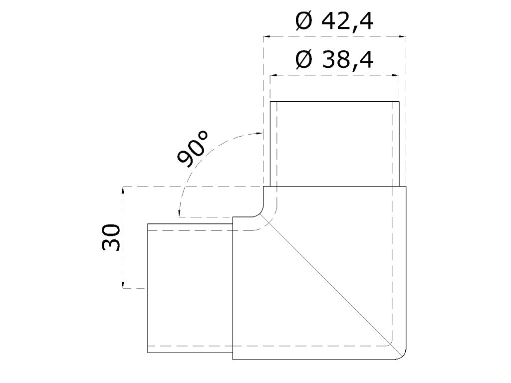 Spojka rohová na trubku ø 42,4 mm, leštená nerez AISI 304