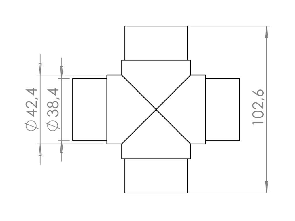 spojka - prechod, krížový kus na trubku ø 42.4mm, brúsená nerez K320 /AISI304