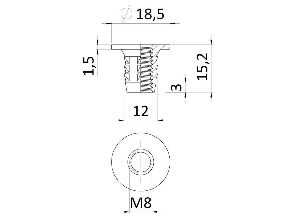 Narážacia matica do dreva M8 x 15,2 mm, zinková zliatina