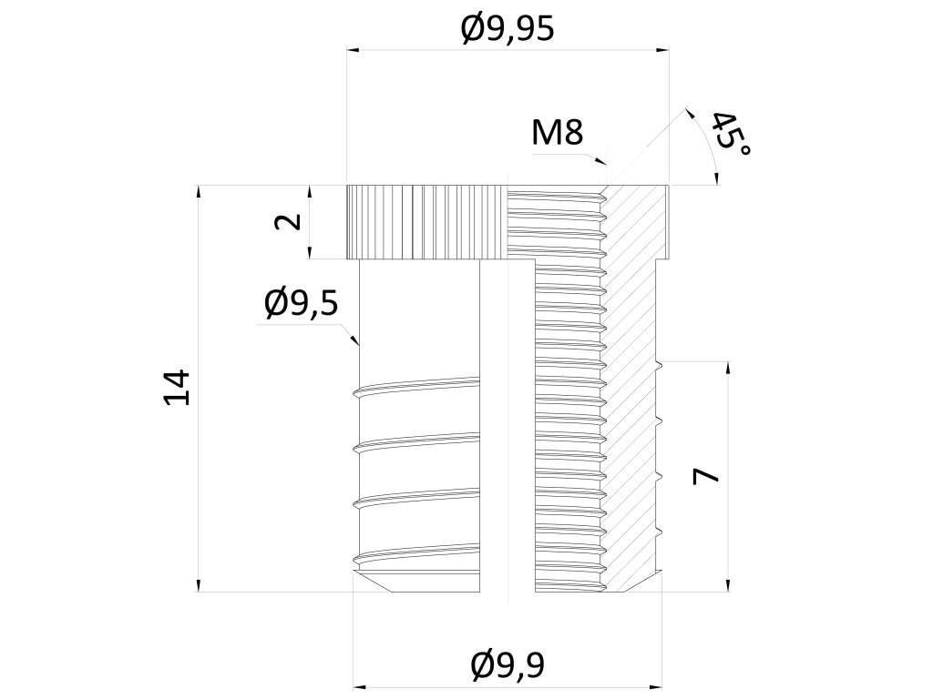 Závitová vložka M8 x 13 mm pre dilatačné kotvenie do plastov