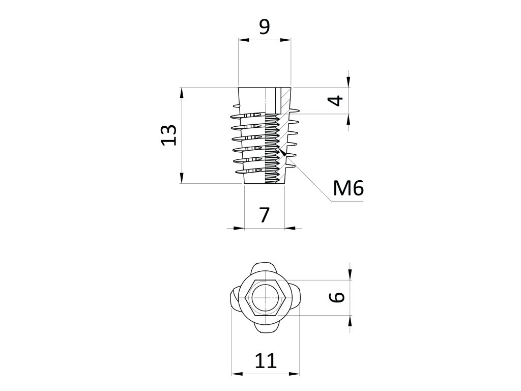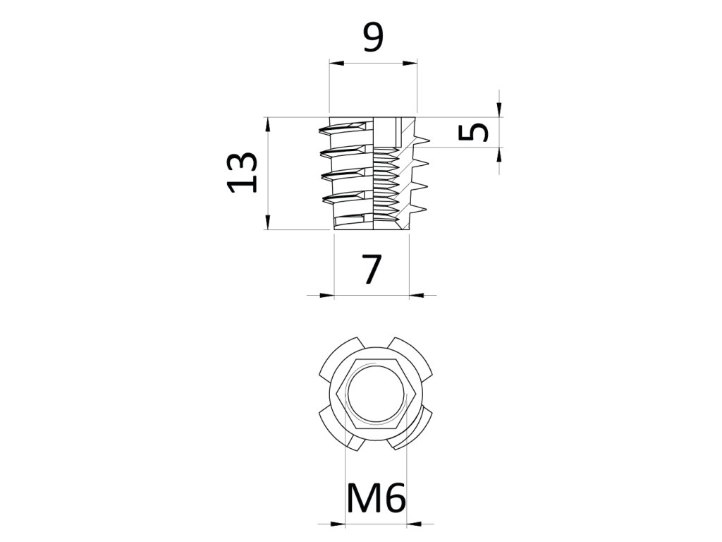 Závrtná matica M6 x 13 mm, imbus šesťhranom, pozink