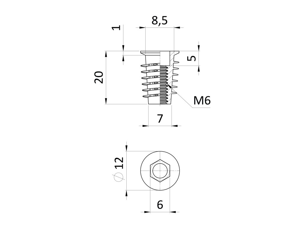 Závrtná matica s vnútorným metrickým závitom a imbus šesťhranom, pozink