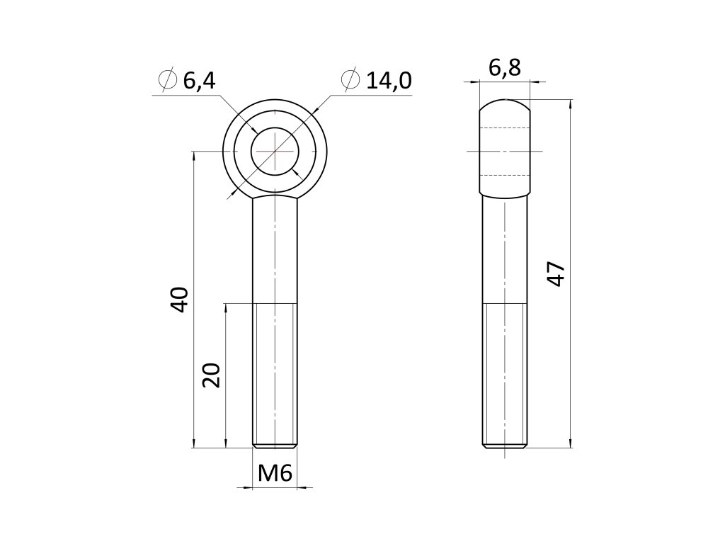 Skrutka s okom DIN 444, M6, čiastočný závit, nerez AISI 304