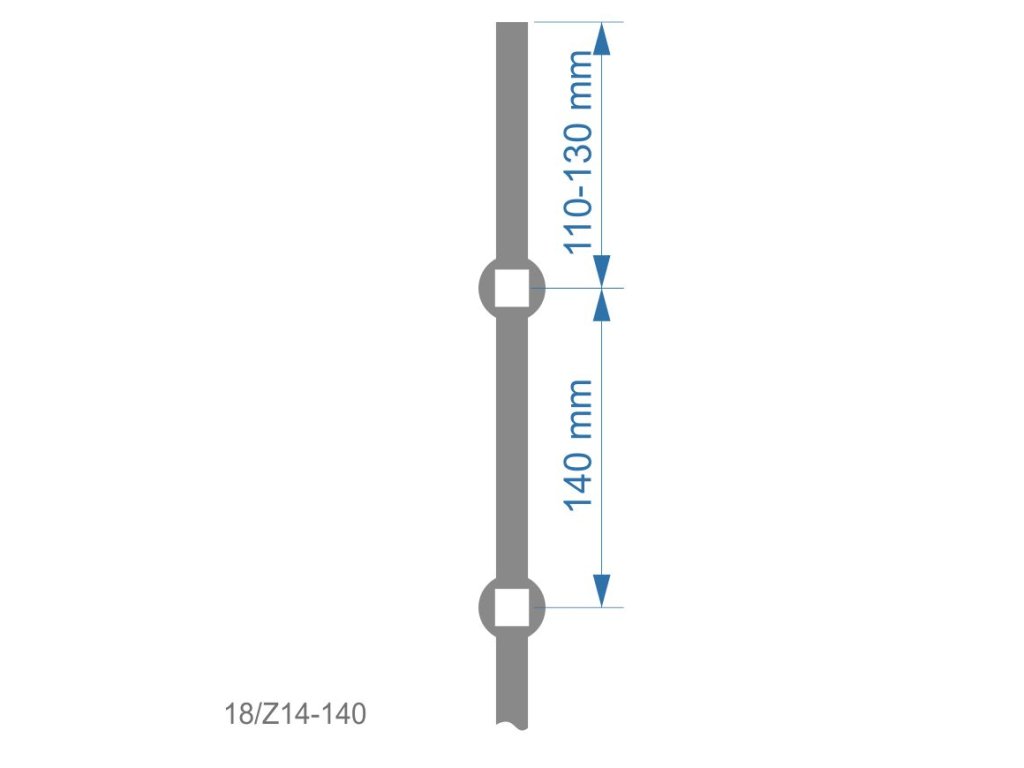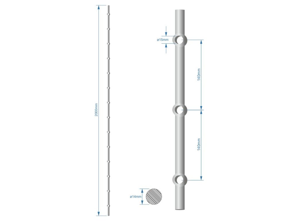 Prebíjaná tyč H 2000mm opieskovaná, profil ø14mm, rozteč dier 140mm, oko ø15mm - 14ks