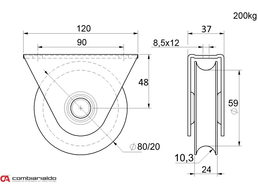 Koliesko od popredného talianského výrobcu Combi Arialdo. Povrchová úprava- pozink. Použitie pre posuvné brány.