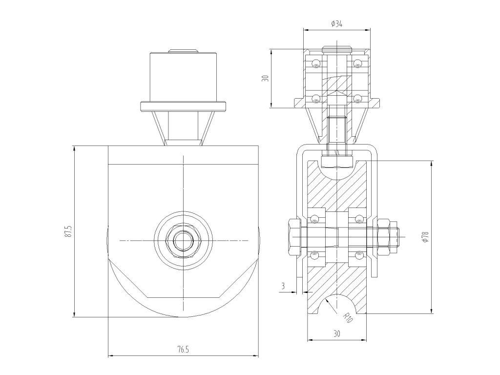 Otočné vodiace koliesko, ktoré využijete prodovšetkým pri montáži oblúkových brán. Koliesko sa používa s vodiacou koľajnicou v tvare U ø20.