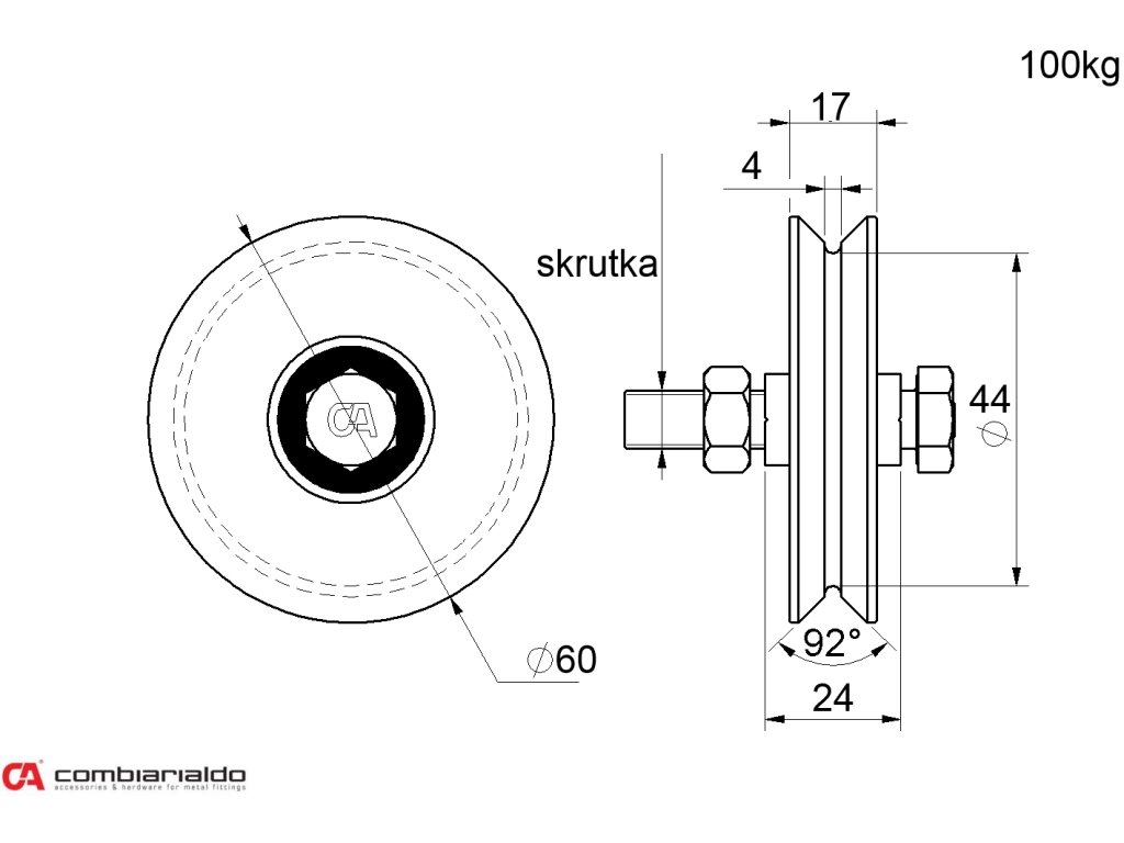 Koliesko od popredného talianského výrobcu Combi Arialdo. Povrchová úprava- pozink. Použitie pre posuvné brány.