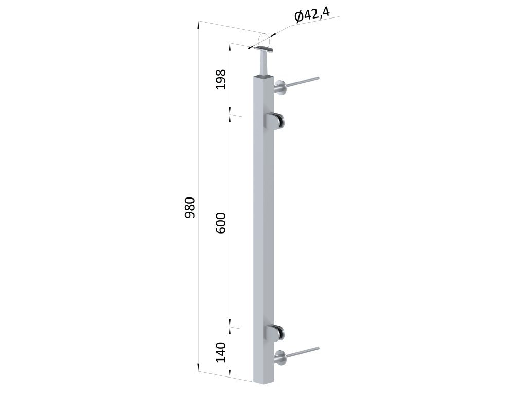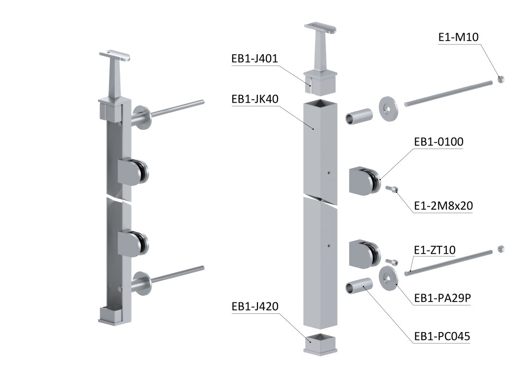 Nerezový stĺp fr. balkón, bočné kotvenie, výplň: sklo, pravý