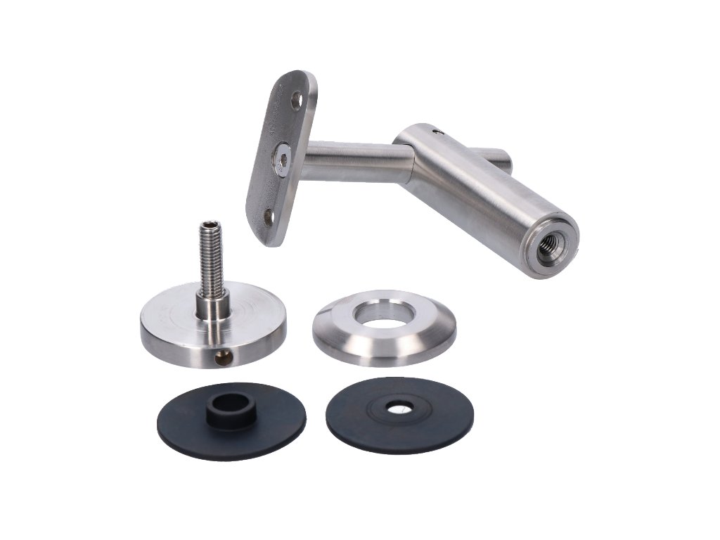 Nerezový držiak madla na sklo s nastaviteľnou výškou je špeciálne navrhnutý prvok na bezpečné upevnenie madla priamo na sklenené panely. Tento držiak je ideálny pre moderné zábradlia a schodiská, kde sa kladie dôraz na elegantný a čistý dizajn. Vďaka možnosti nastavenia výšky je možné madlo jednoducho prispôsobiť individuálnym potrebám a architektonickým požiadavkám. Držiak je vyrobený z nerezovej ocele AISI304, ktorá je vysoko odolná a vhodná aj pre exteriérové použitie, pokiaľ sa nejedná o vlhké alebo agresívne prostredie. Pre montáž je potrebné pripraviť otvor v skle.