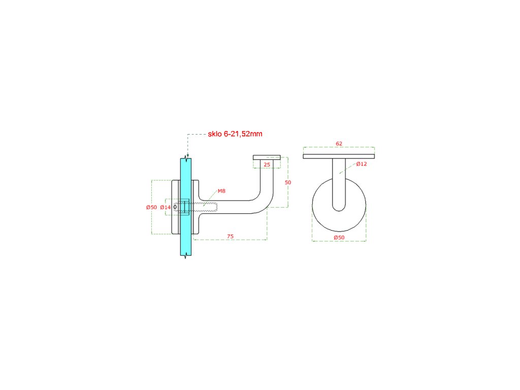 Držiak madla pevný na jokel, sklo 6 - 21,52 mm, AISI 304