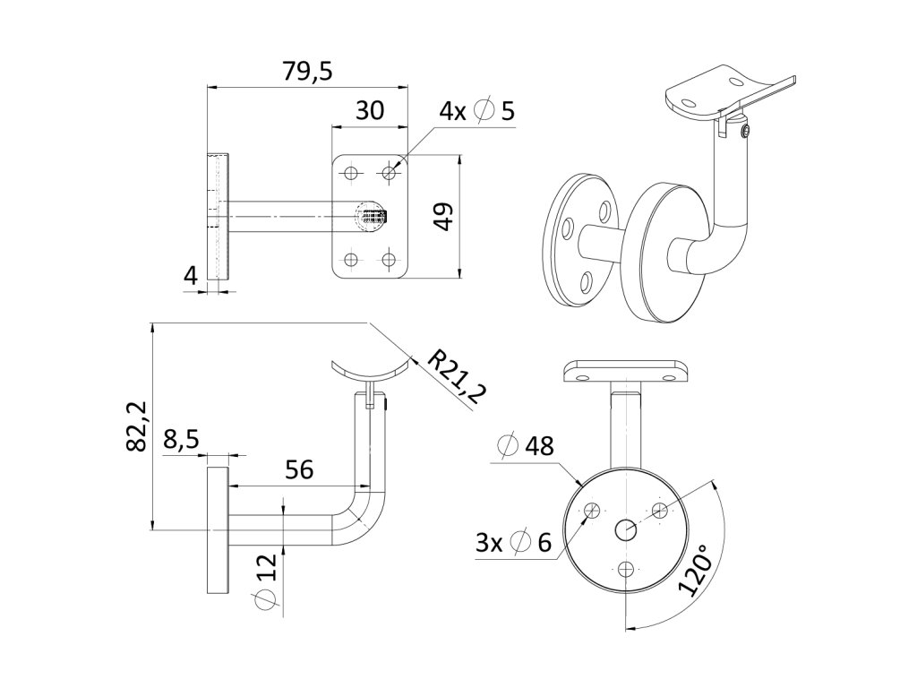 Držiak madla ø 42,4 mm, Nastaviteľný, brúsená AISI 304