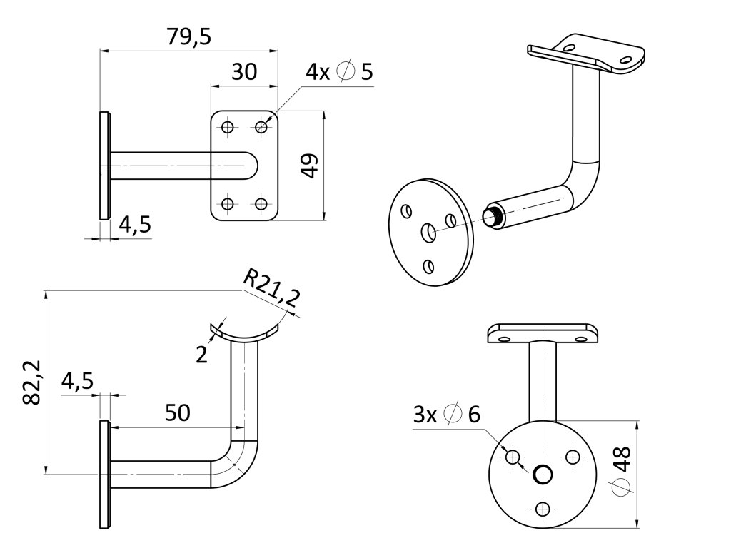 Držiak madla na stenu je elegantný a praktický prvok, ktorý slúži na bezpečné uchytenie madla. Tento konkrétny model je vyrobený z kvalitnej brúsenéj nehrdzavejúcej ocele AISI 304, ktorá je vhodná nielen do interiéru, ale aj do exteriéru, pokiaľ nejde o agresívne alebo vlhké prostredie.
