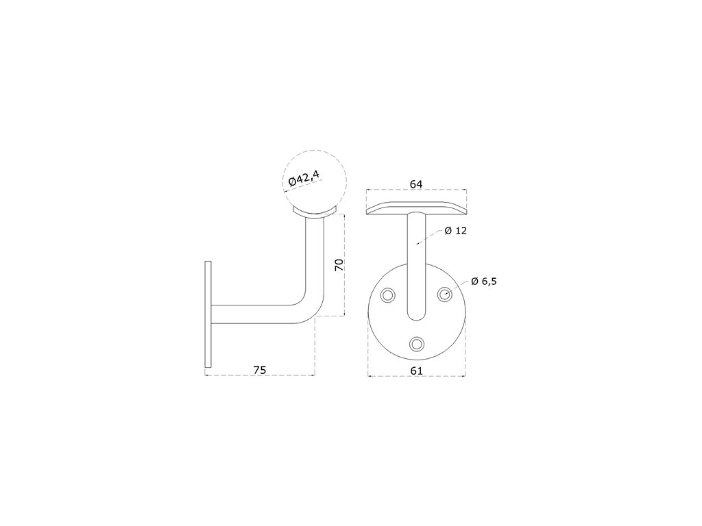 Držiak madla ø 42,4 mm na stenu, leštená nerez AISI 304