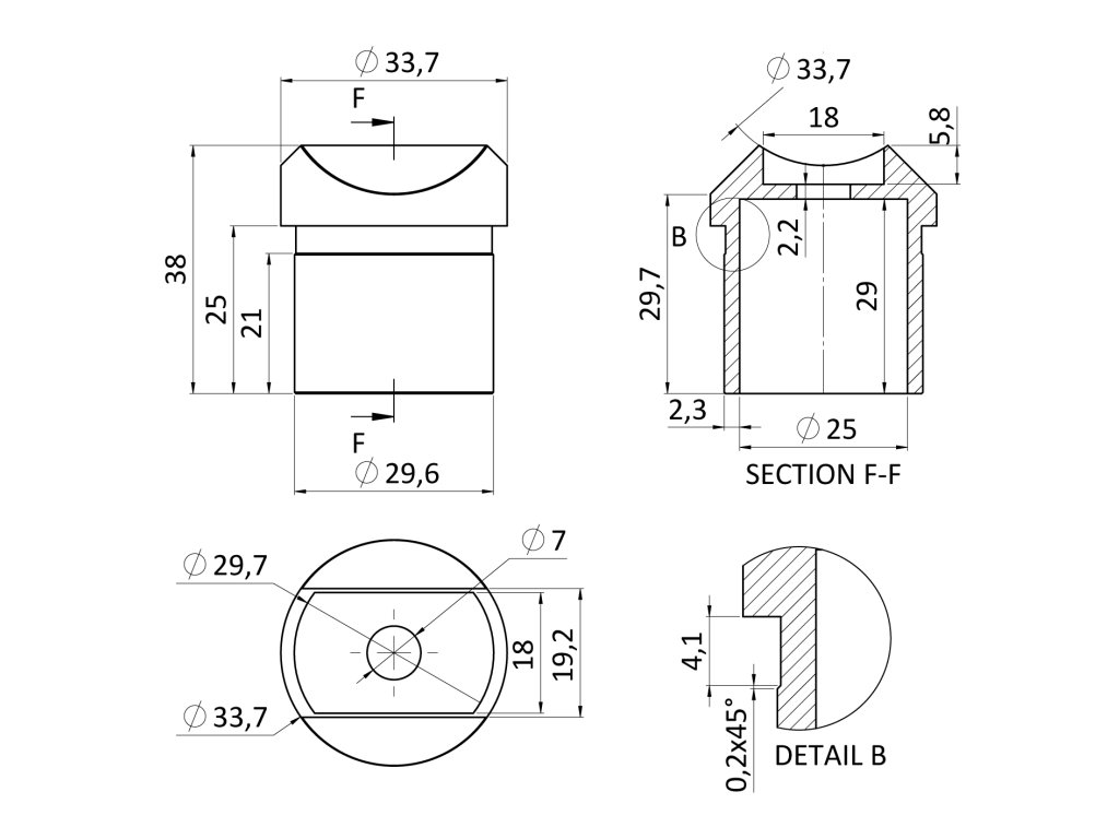 Držiak madla ø 33,7 mm na trubku ø 33,7 mm, brúsená AISI 304