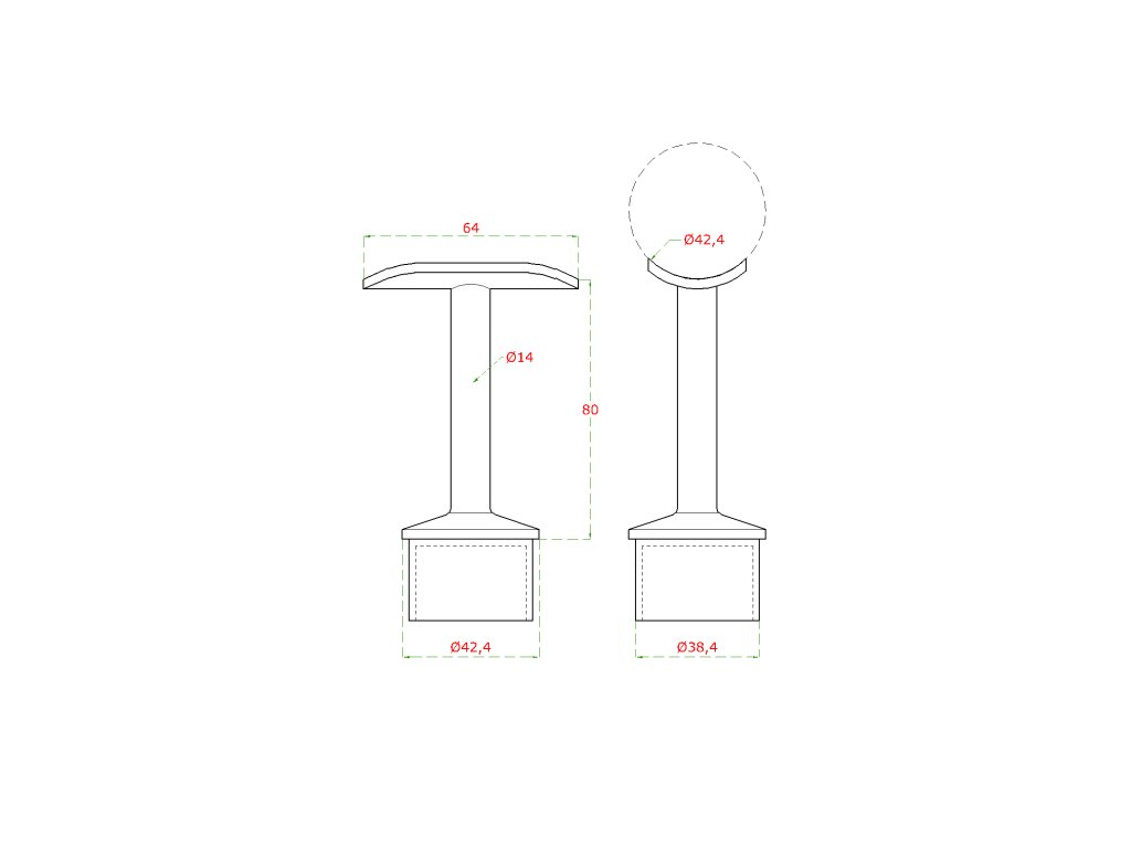 držiak madla pevný na trubku ø 42.4mm (78x64mm), leštená nerez /AISI304