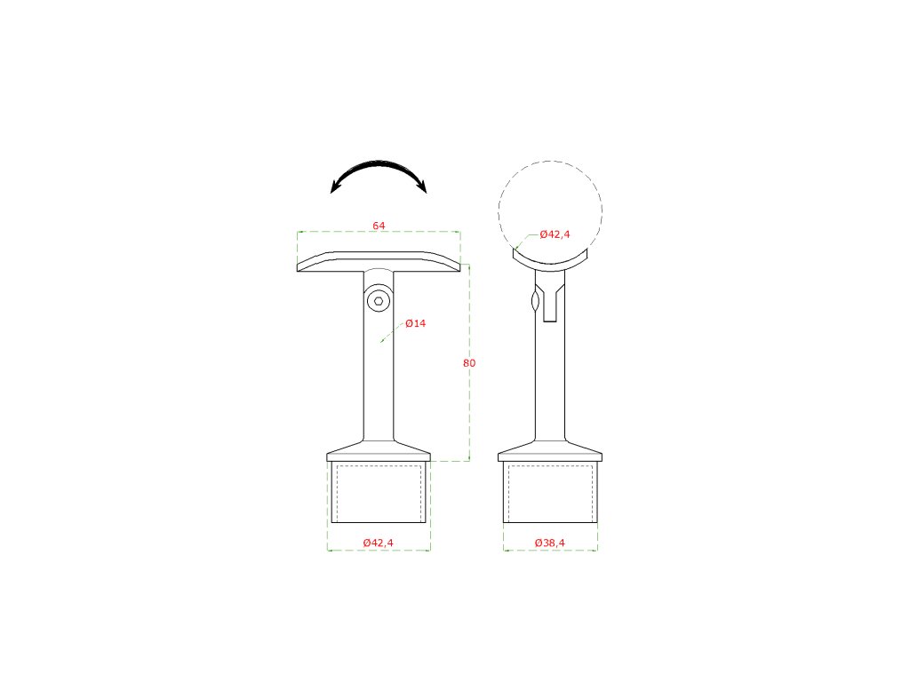 držiak madla s kĺbom na trubku ø 42.4mm (80x64mm), brúsená nerez K320 /AISI304