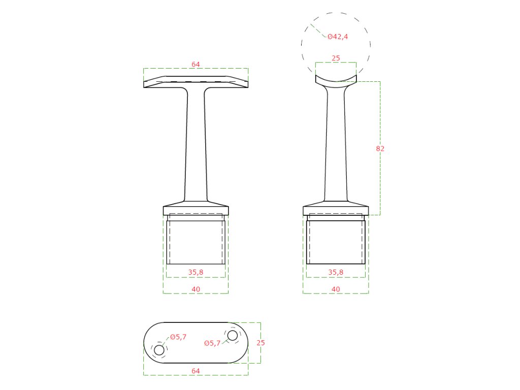 držiak madla pevný, na madlo trubku ø 42.4mm (66x81mm), brúsená nerez K320 /AISI304