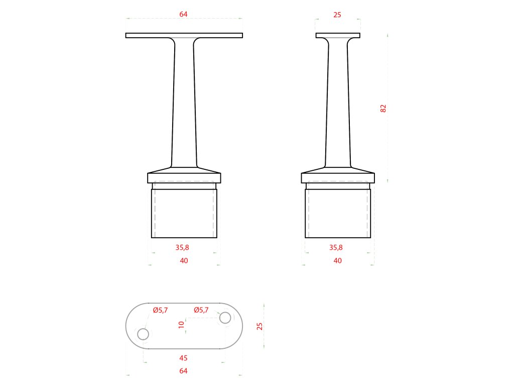 Držiak madla pevný /plochý, brúsená nerez AISI 304