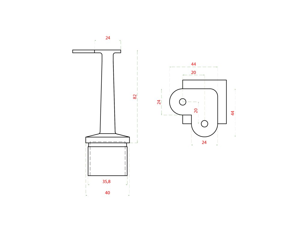 Držiak madla pevný - rohový, plochý, brúsená nerez AISI 304