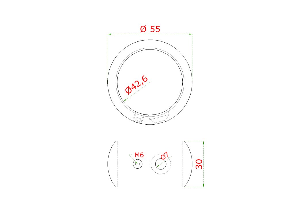 držiak madla, prstenec (ø 55mm /M6), na trubku ø 42.4mm, brúsená nerez K320 /AISI304