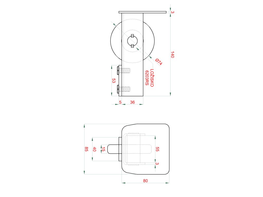 Nábehové koliesko samonosnej brány pre profil 80 x 85 x 5 mm