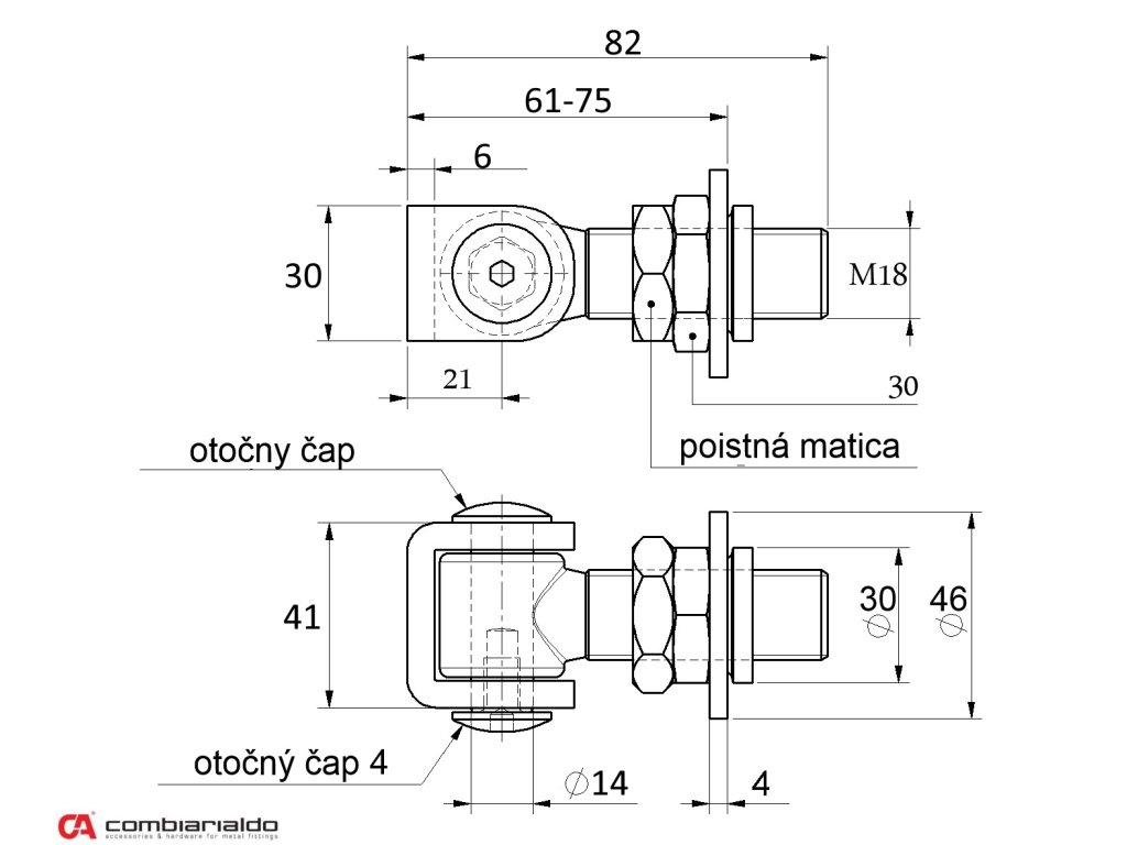 Regulovateľný, navárací záves-pant, závit M18 od popredného talianského výrobcu Combi Arialdo. Povrchová úprava- pozink, časť v tvare U /prizvára sa na krídlo brány/ - bez povrcovej úpravy. Použitie pre ľahké brány. Zaťaženosť krídla zvýši kombinácia so spodným závesom C348/20 a C349/20. Počet kusov v balení - 12.