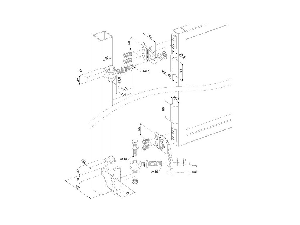 Z dôvodu bezpečnosti zatvárania, dôrazne odporúčame použitie závesu spoločne s hydraulickým zatváračom brány RHINO, čím zabezpečíte kontrolované zatváranie.