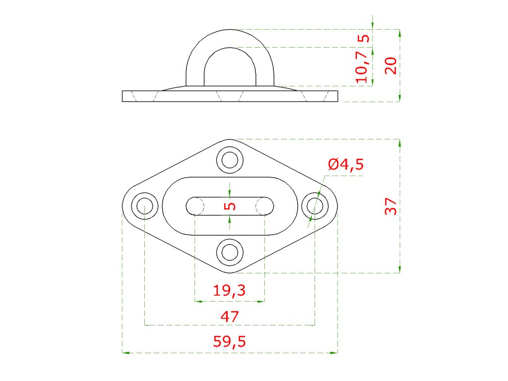nástenný úchyt lanka vzor diamant, ø obľúka 5.0mm, brúsená nerez K320/ AISI304