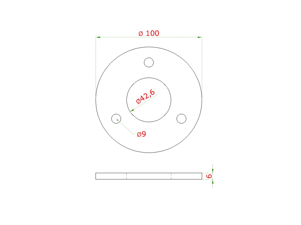 Kotviaca platňa ø 100 mm na trubku ø 42,4 mm, AISI 304