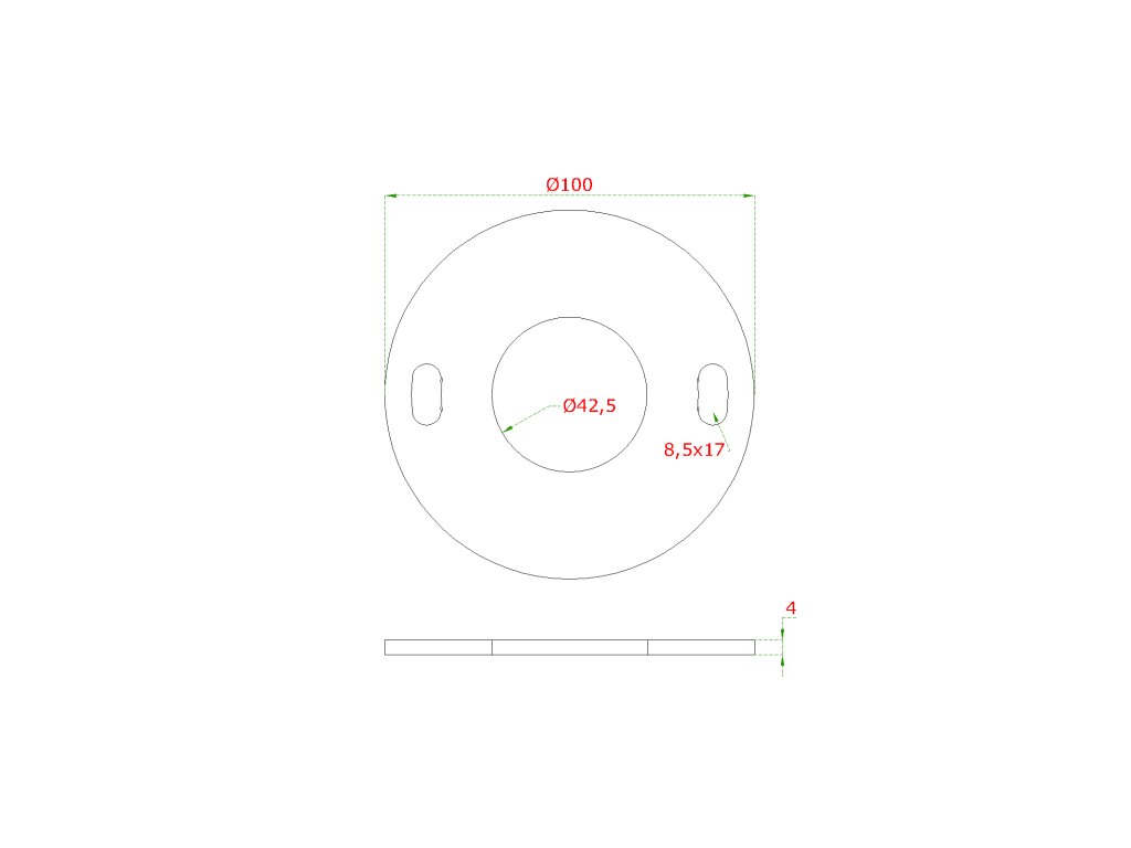 Kotviaca platňa (ø 100 mm) na trubku ø 42,4 mm (otvor ø 42,5 mm), bez povrchovej úpravy /AISI 304