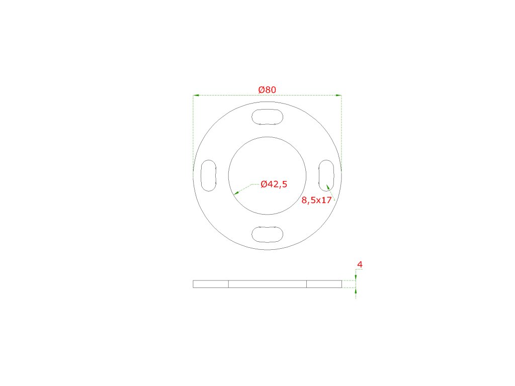 Kotviaca platňa (ø 80 mm) na trubku ø 42,4 mm (otvor ø 42,5 mm), bez povrchovej úpravy/AISI 304