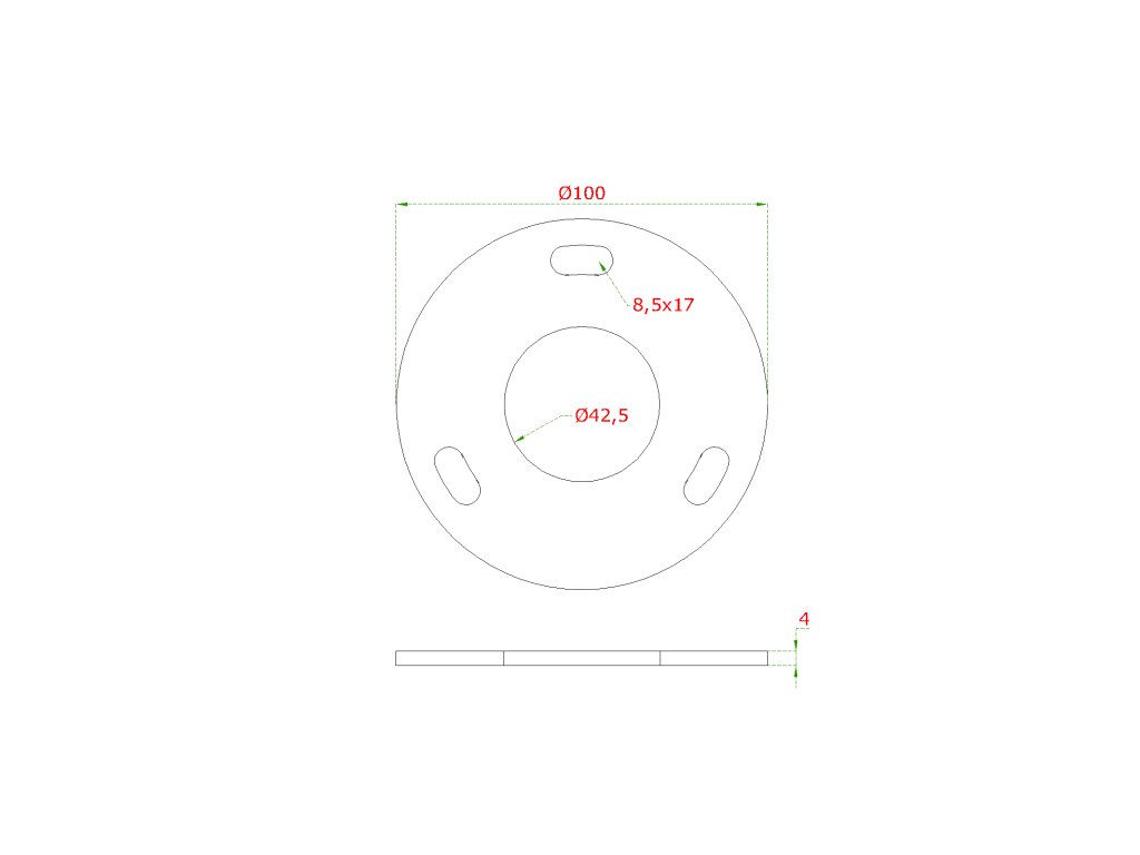 Kotviaca platňa (ø 100 mm) na trubku ø 42,4 mm (otvor ø 42,5 mm), bez povrchovej úpravy /AISI 304