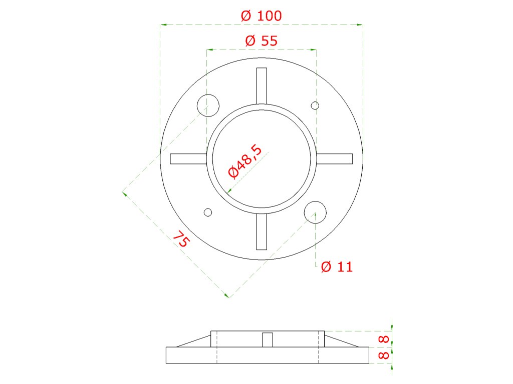 Príruba na trubku ø 48,3 mm (ø 100/8,8 mm), nerez AISI 304