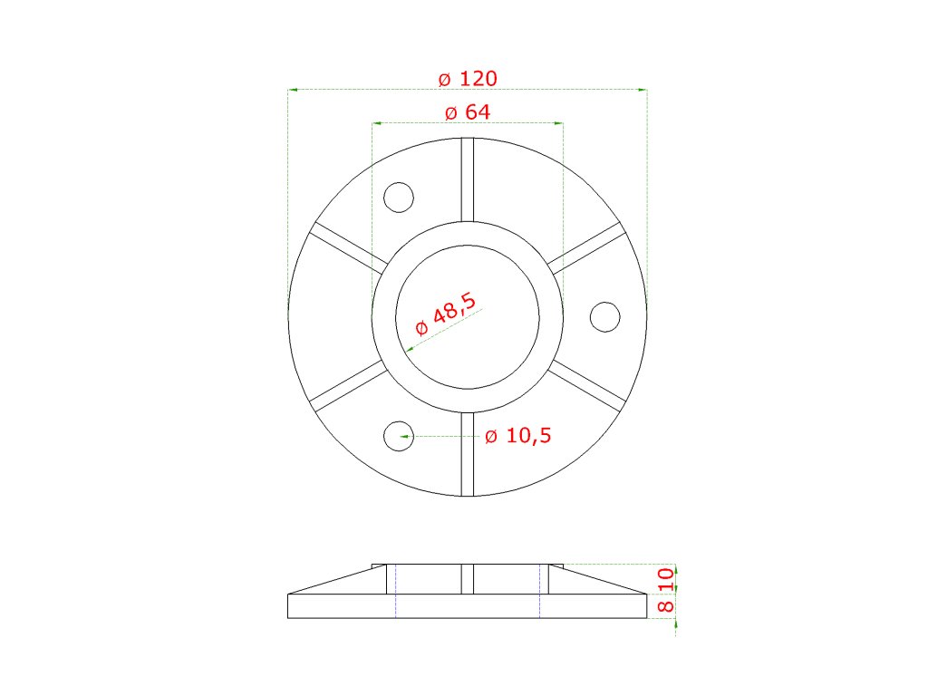 Príruba ø 120 mm na trubku ø 48,3 mm, nerez AISI 304