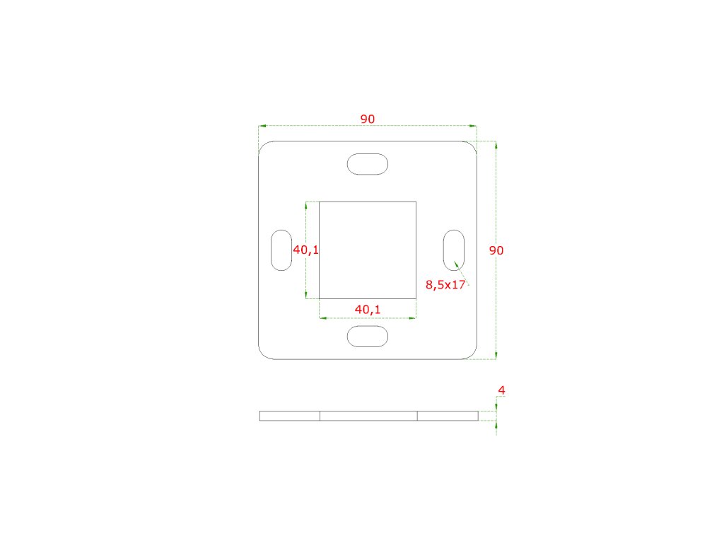 Kotviaca platňa (90 x 90 mm), otvor: 40,1 x 40,1 mm, brúsená nerez K320 / AISI 304