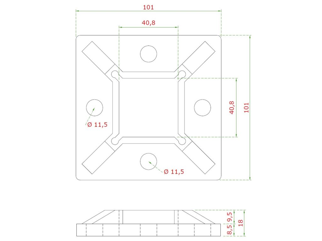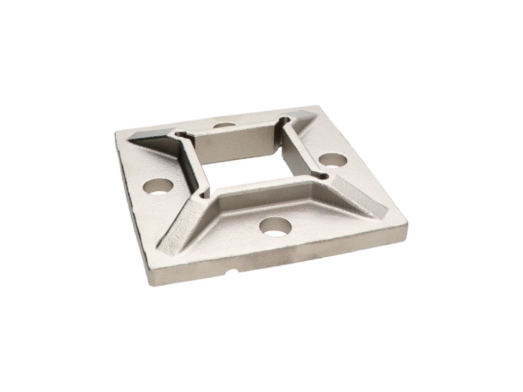 Príruba spodná (100 x 100/2 x 11 mm), otvor: 40,5 x 40,5 mm, na profil 40 x 40 mm, bez povrchové úpravy, AISI 304