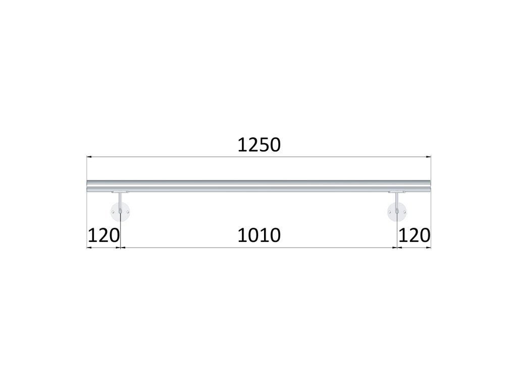 madlo 1250mm /leštená nerez /AISI304, set:2ks úchyt, madlo ø 42.4mm s ukončením