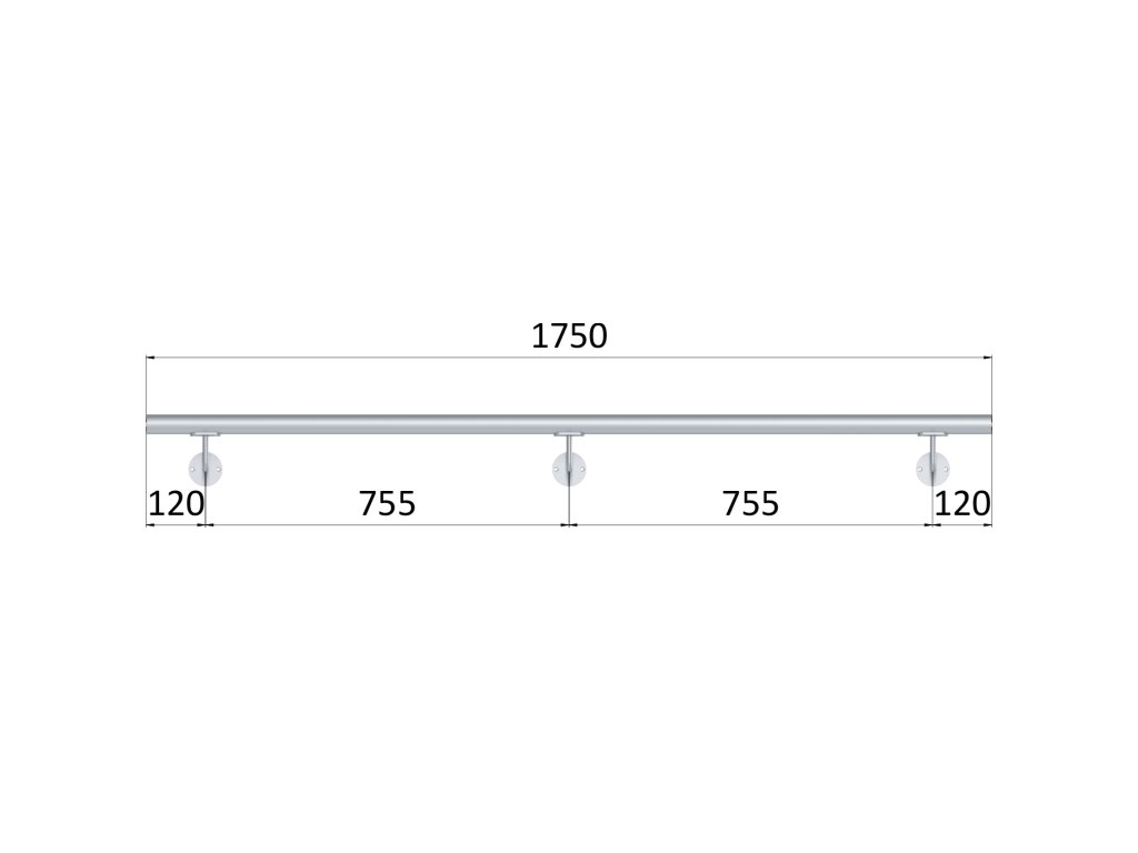 madlo 1750mm /leštená nerez /AISI304, set:3ks úchyt, madlo ø 42.4mm s ukončením